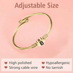 - Material: Alphabet Cuff Letter Initial Bangle Bracelet jewelry is made of high quality stainless steel which is 100% safe for sensitive skin ,and it has been electroplated so it will not fade,tarnish,rust or stain.