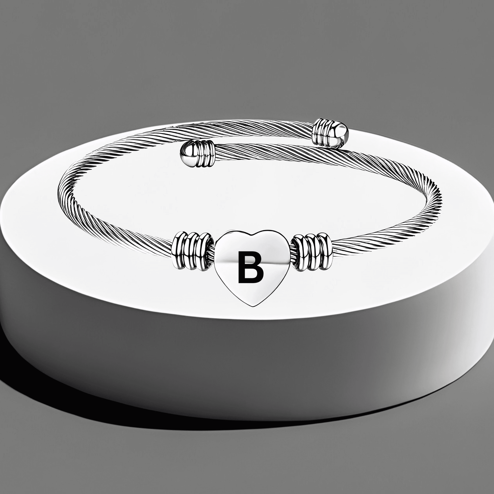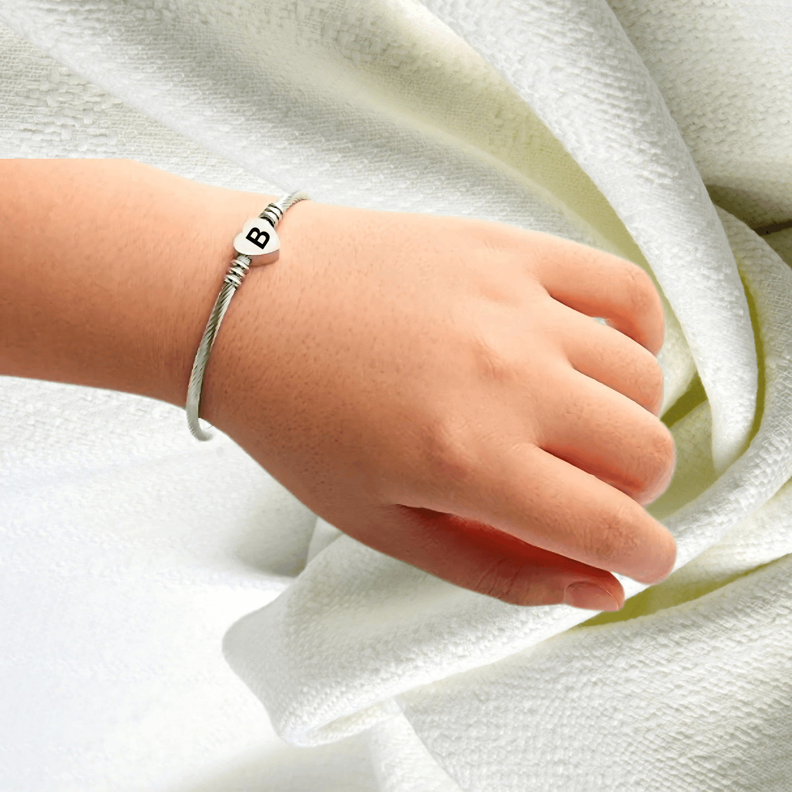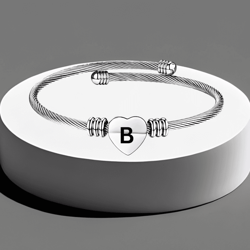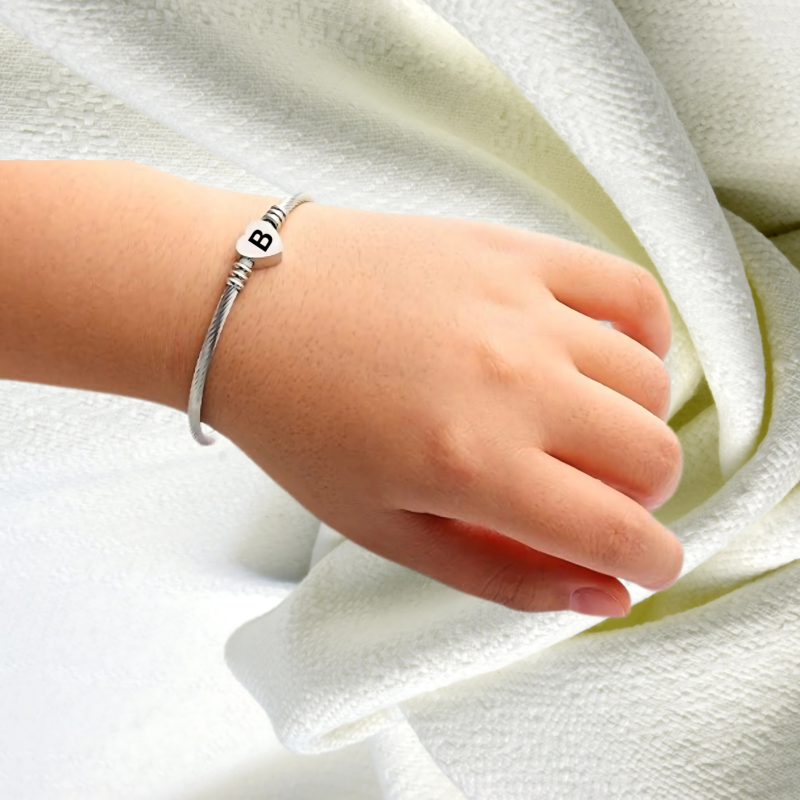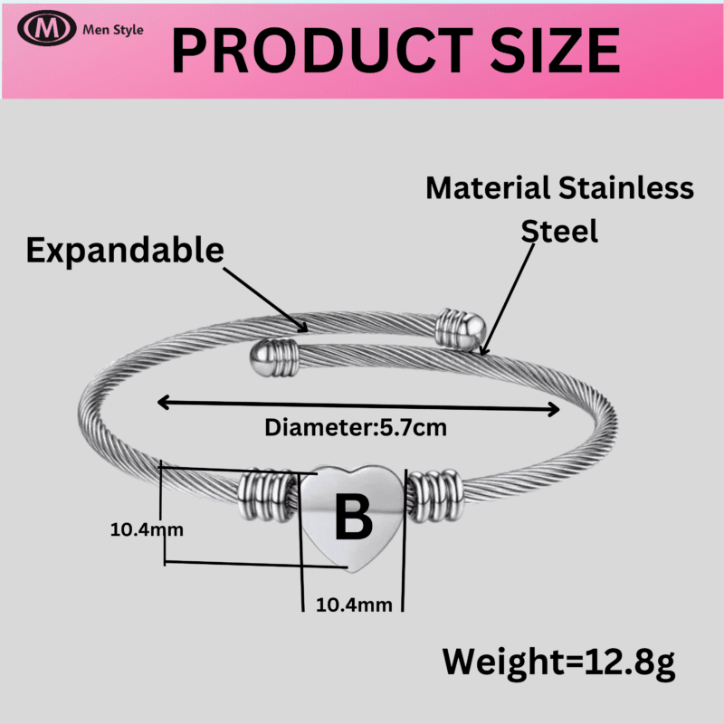 - Elegant but cute bangle bracelet with heart charm, fashionable and perfect to bright up your overall outfit. This romantic heart design with adjustable size feature will make it great mother gift and best friend bracelet. Customizable: We can engrave some words on the heart charm for you. Size:The Letter Cuff Initial Bangle Bracelet is Expandable,You can use a soft ruler to measure the circumference of your wrist or ankle so that you can choose the product that suits you.