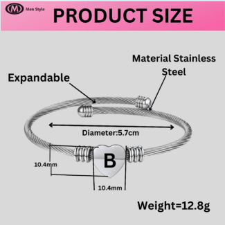 Heart Kada Alphabet B Gift Silver